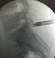 На первых двух рентген-изображениях ниже показан трансфораминальный доступ, на последнем изображении с краю показан интерламинарный доступ.