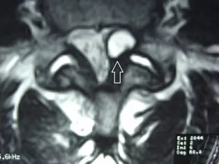 Патогенез:Считается, что синовиальная киста формируется в результате выпячивания синовиальной сумки межпозвонкового сустава. Образовавшаяся при этом полость заполняется синовиальной жидкостью. Нестабильность позвоночного сегмента является ведущим фактором развития синовиальных кист. Чаще всего кисты фасеточных суставов формируются в поясничном отделе позвоночника на уровне L4-L5. Реже в шейном и грудном отделе позвоночника. Образовавшаяся киста вызывает стеноз позвоночного канала и\или межпозвонкового отверстия с соответствующей клинико-неврологической картиной.