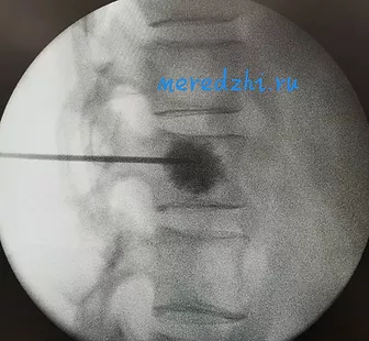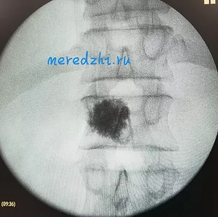 Операция осуществляется под контролем рентгеновской аппаратуры в двух проекциях, что позволяет точно определять расположение костного цемента в теле позвонка.